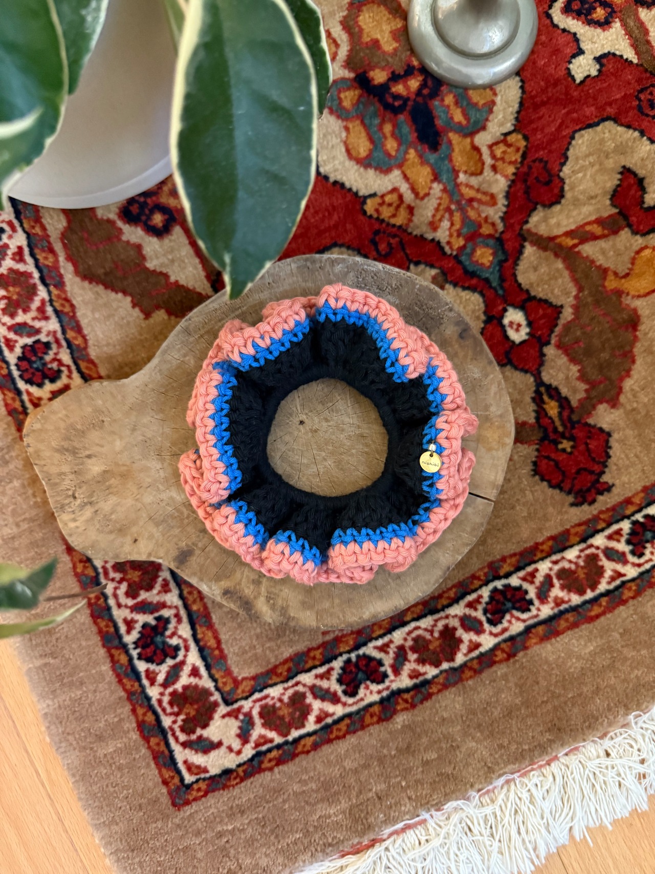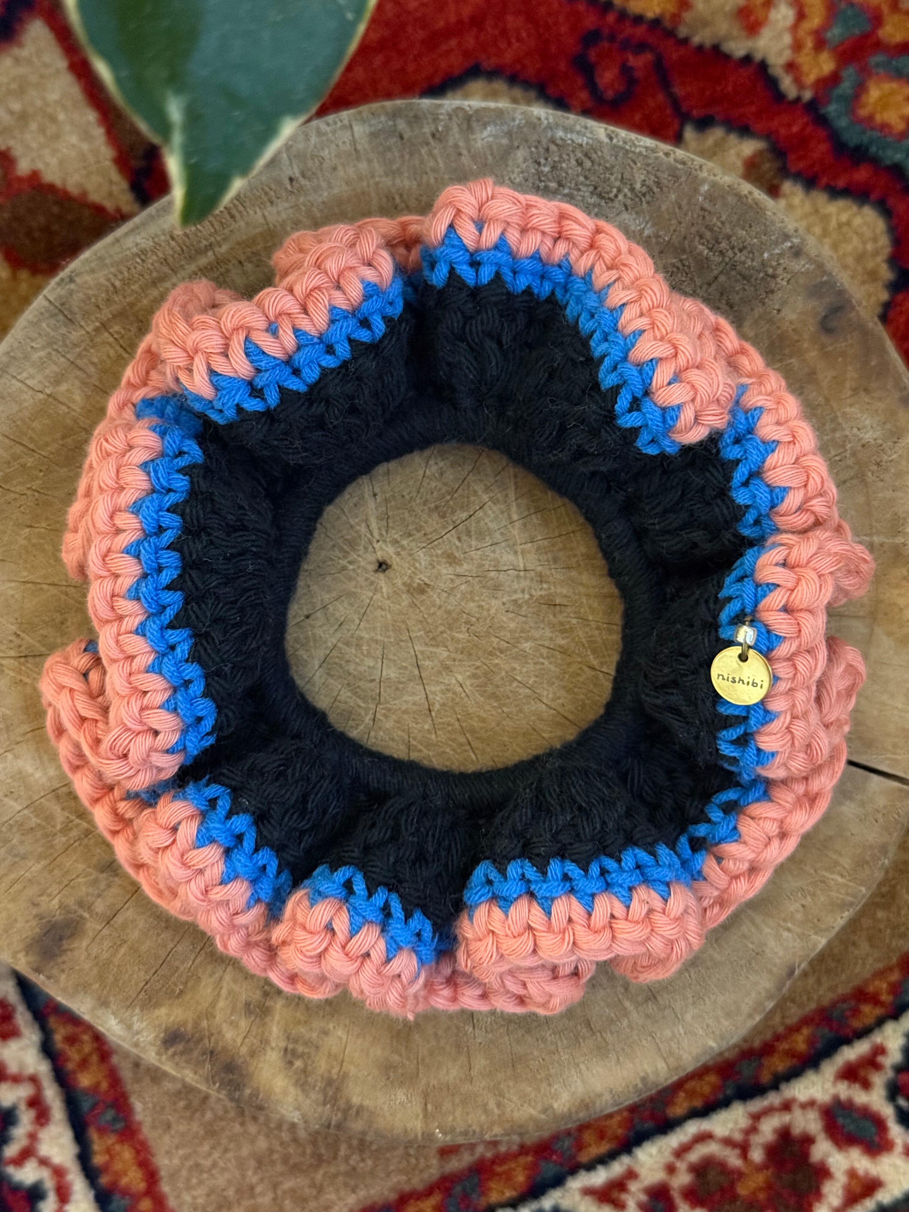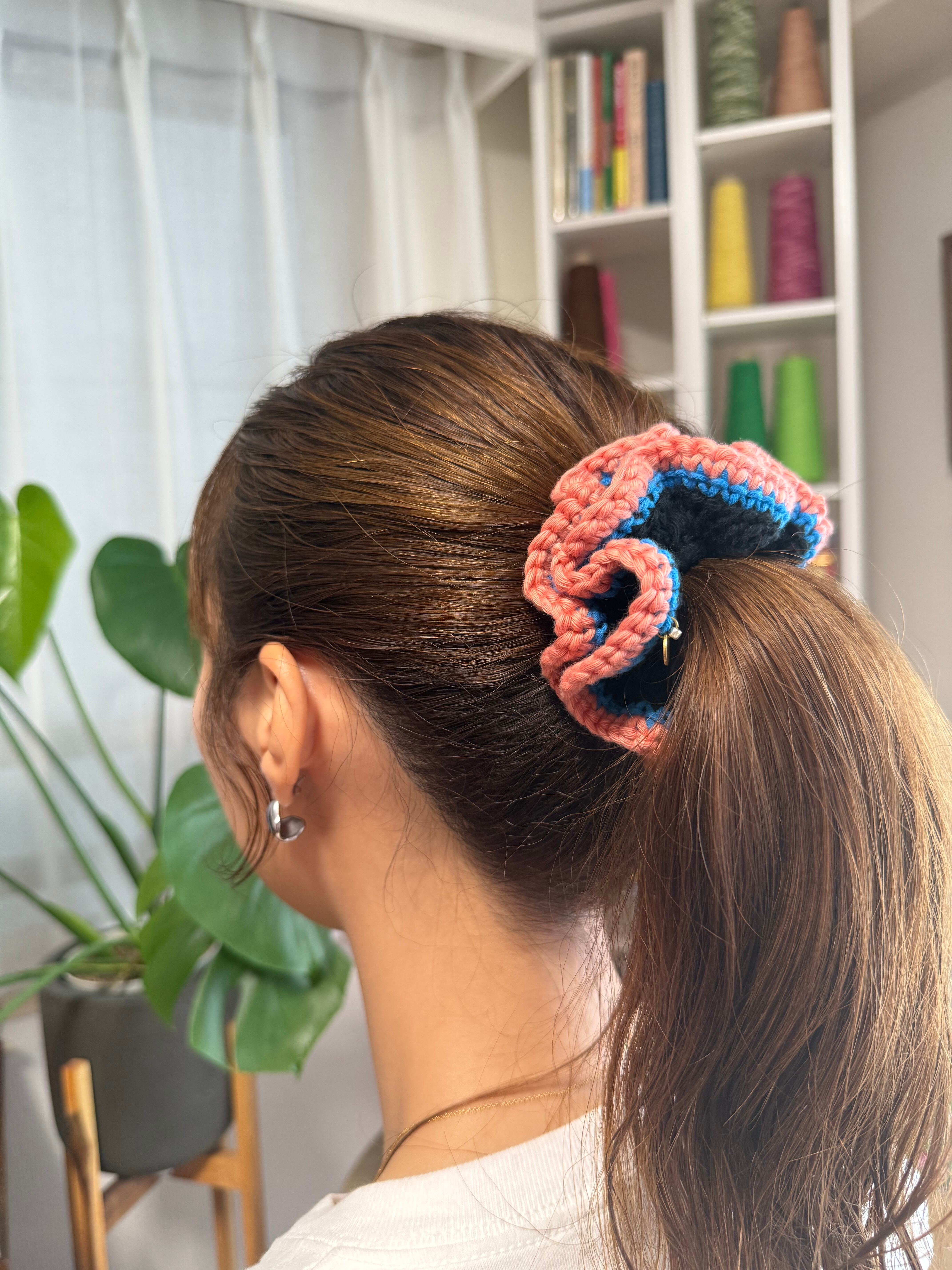 アクセサリー感覚で付けられる手編みのシュシュ。
