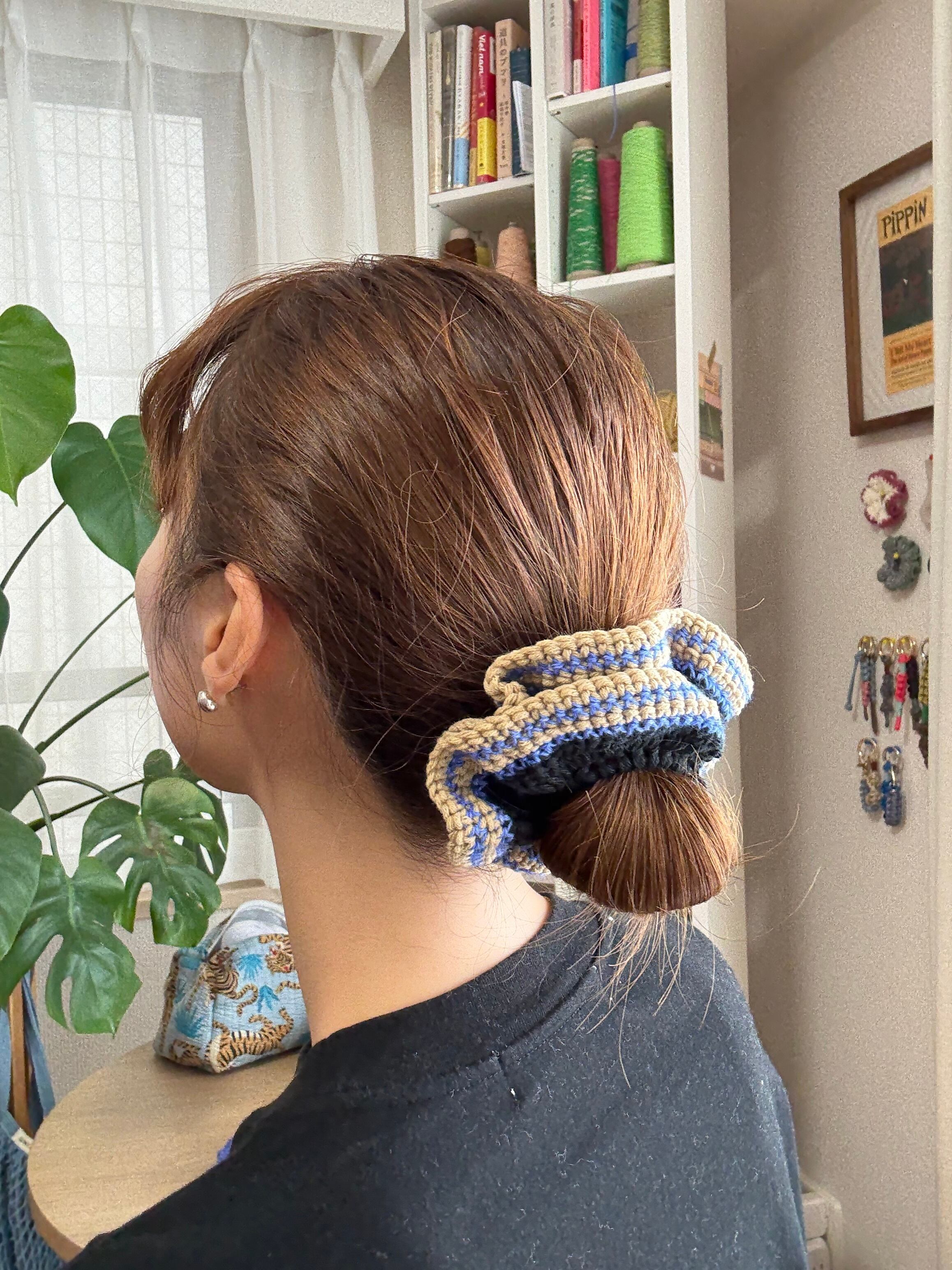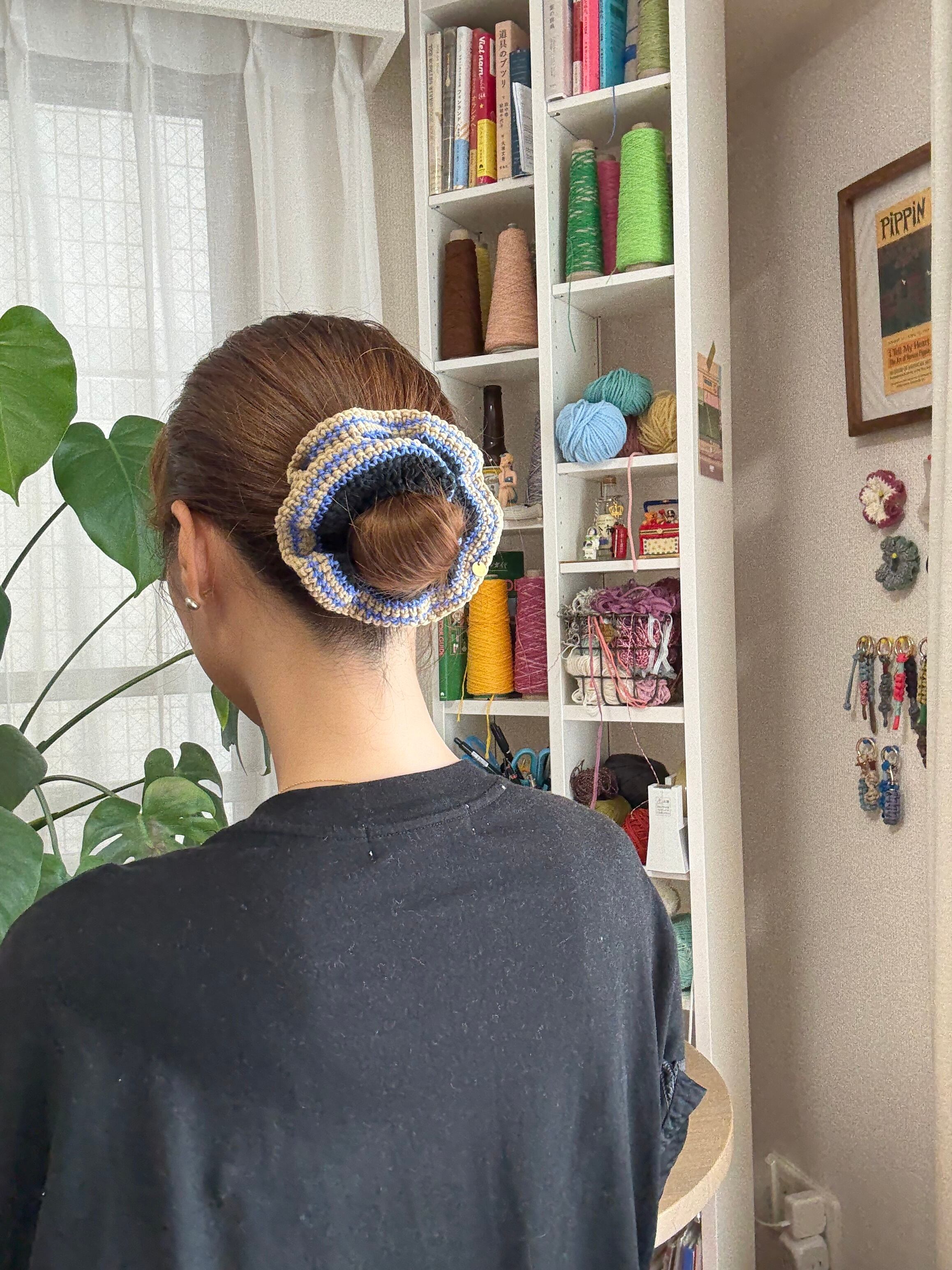 お団子にしても可愛い大きめサイズのシュシュ。
