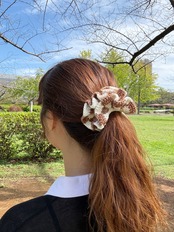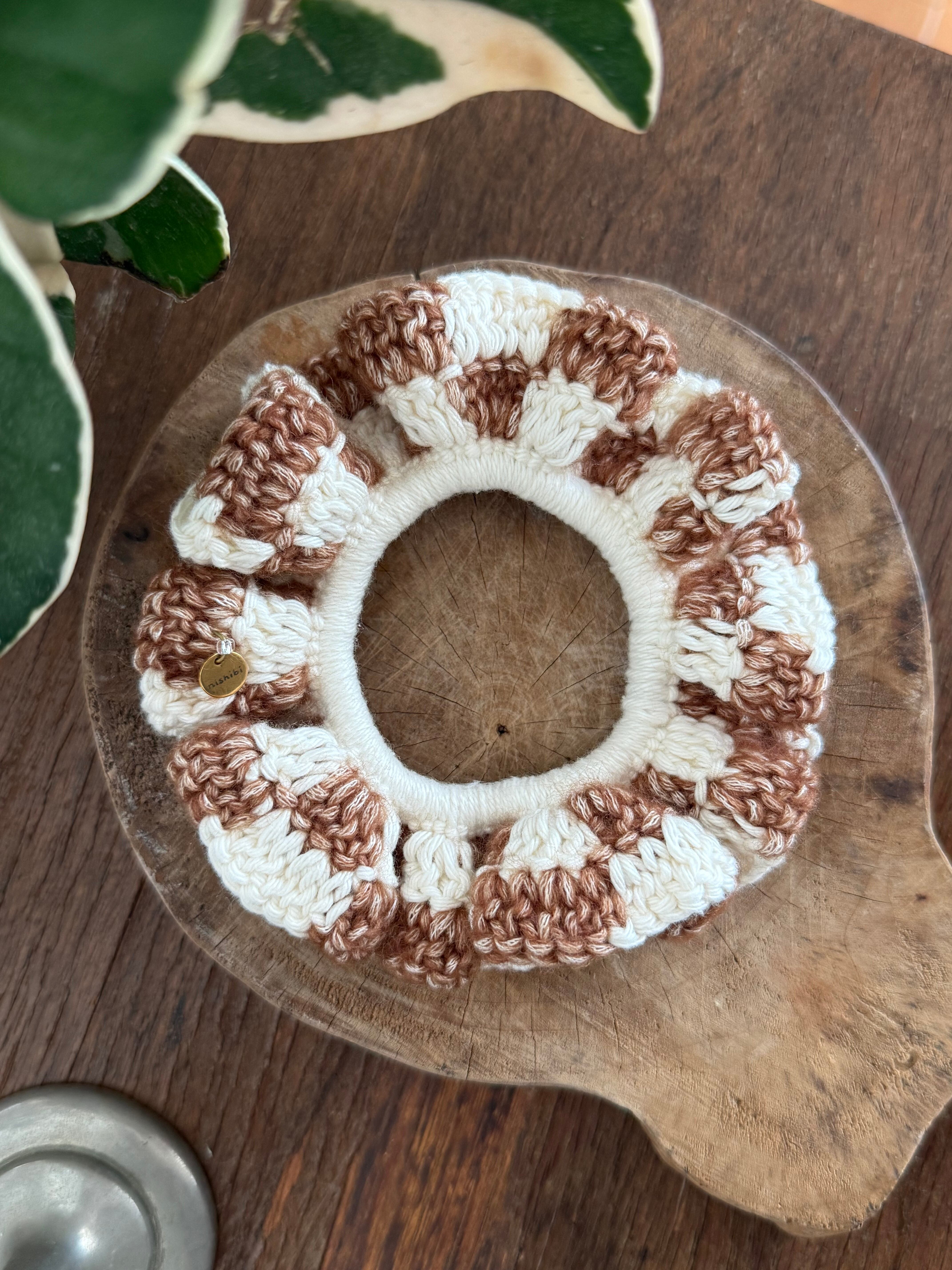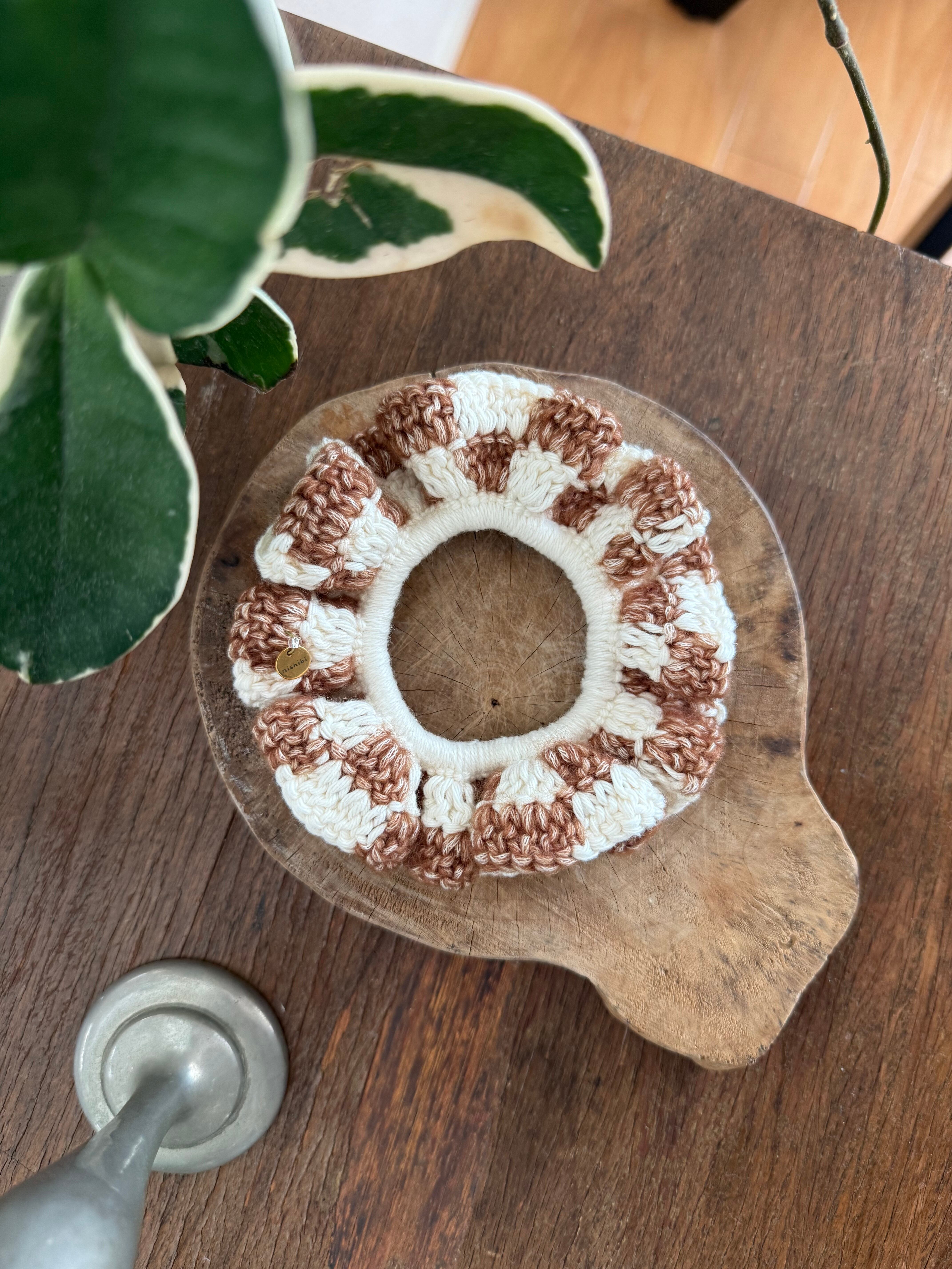 アクセサリー感覚で付けられる手編みのシュシュ。