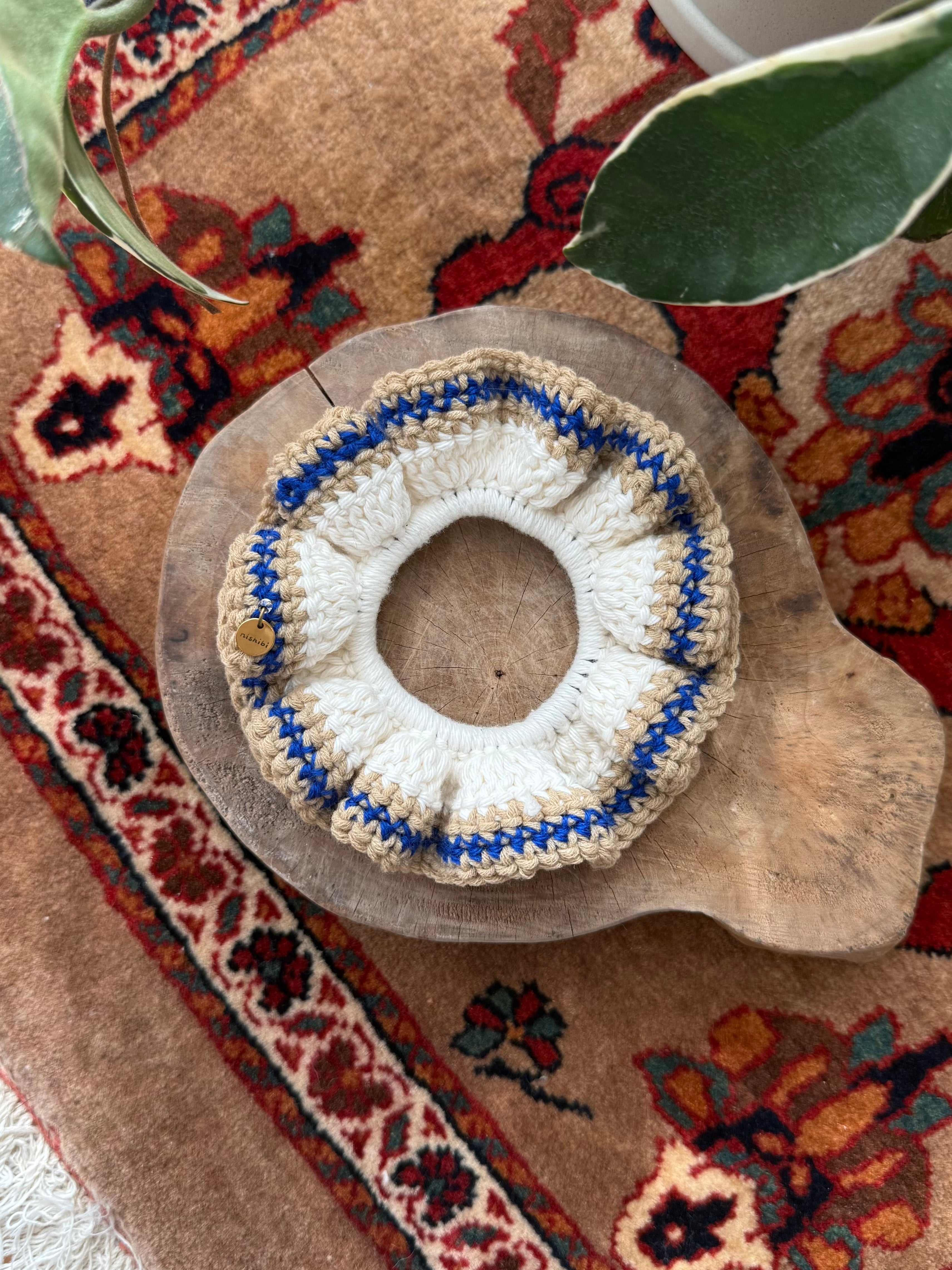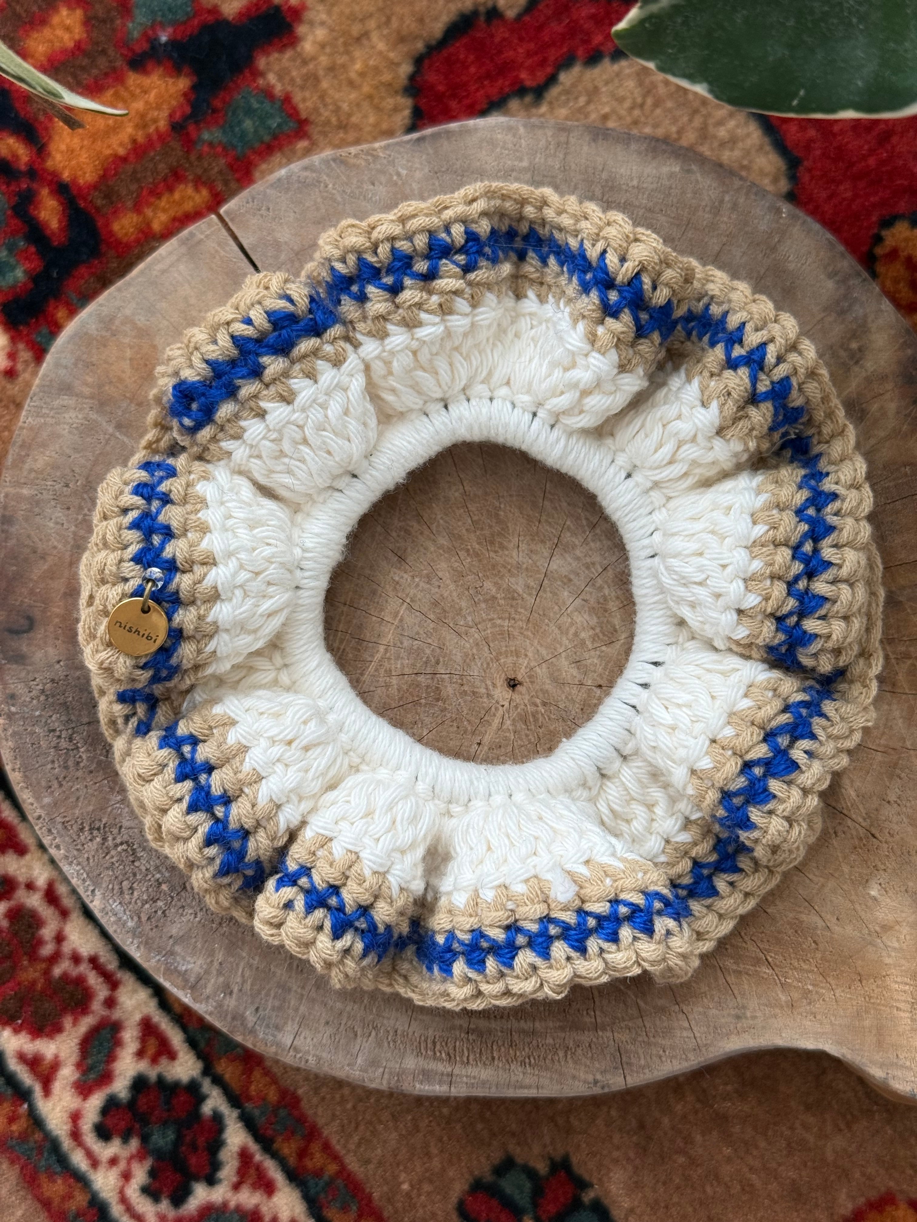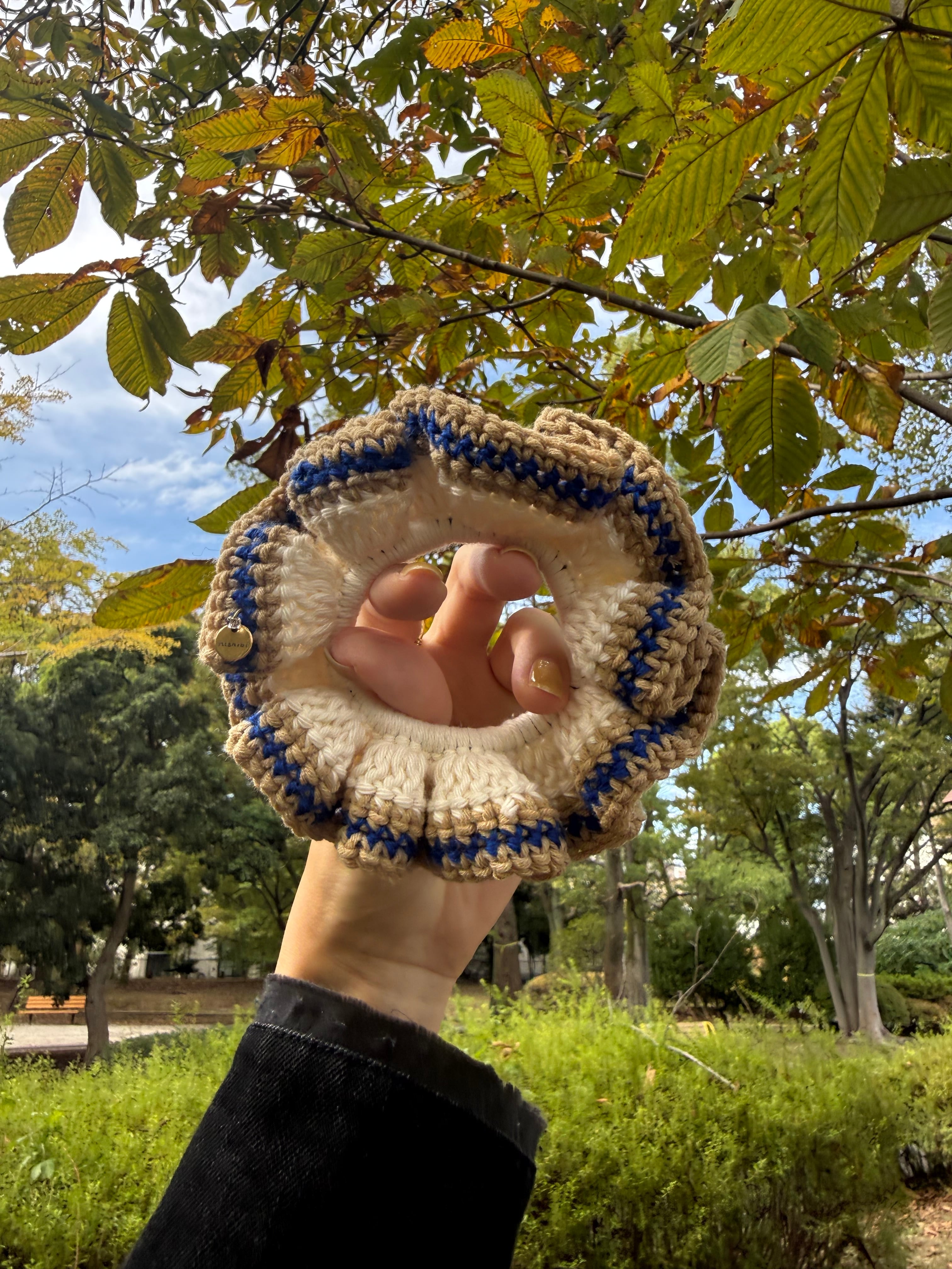 アクセサリー感覚で付けられる手編みのシュシュ。