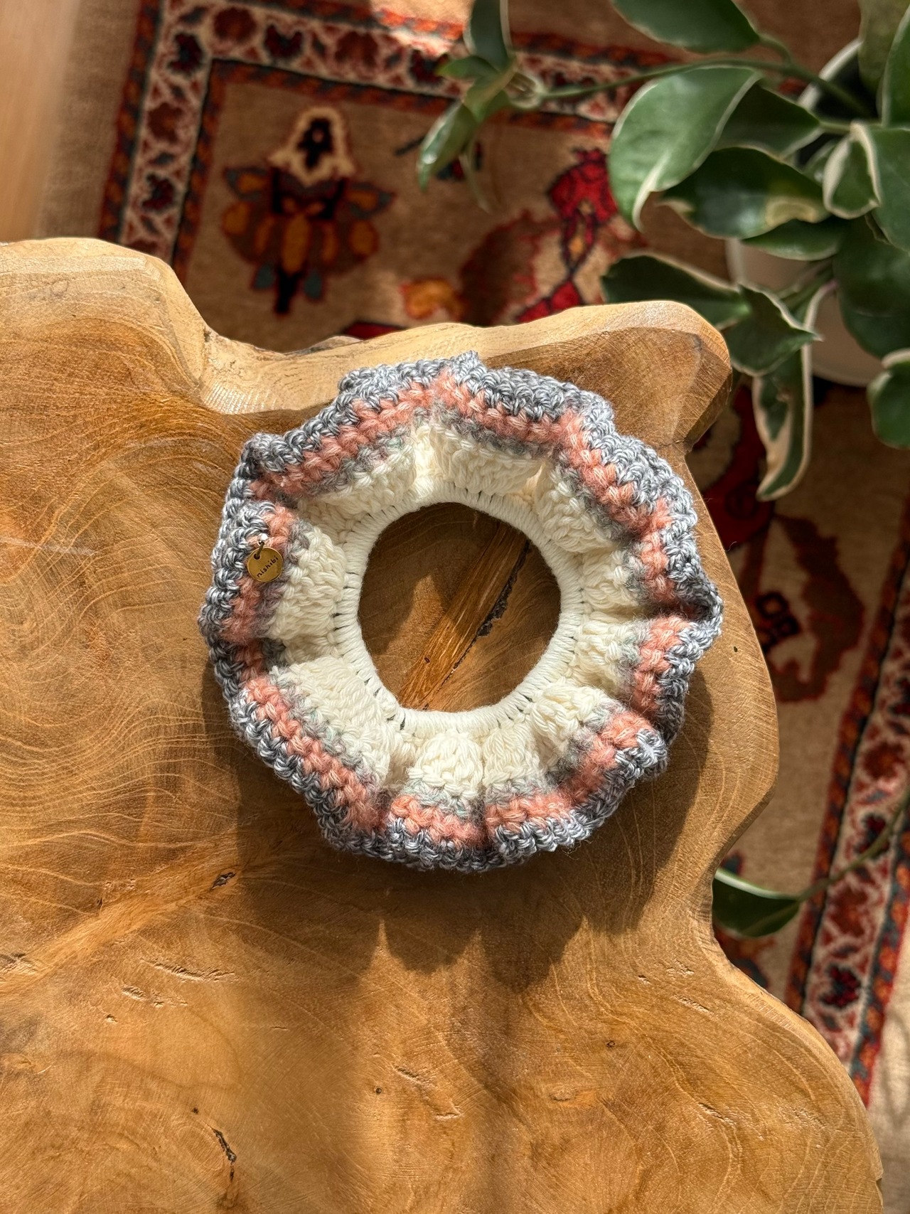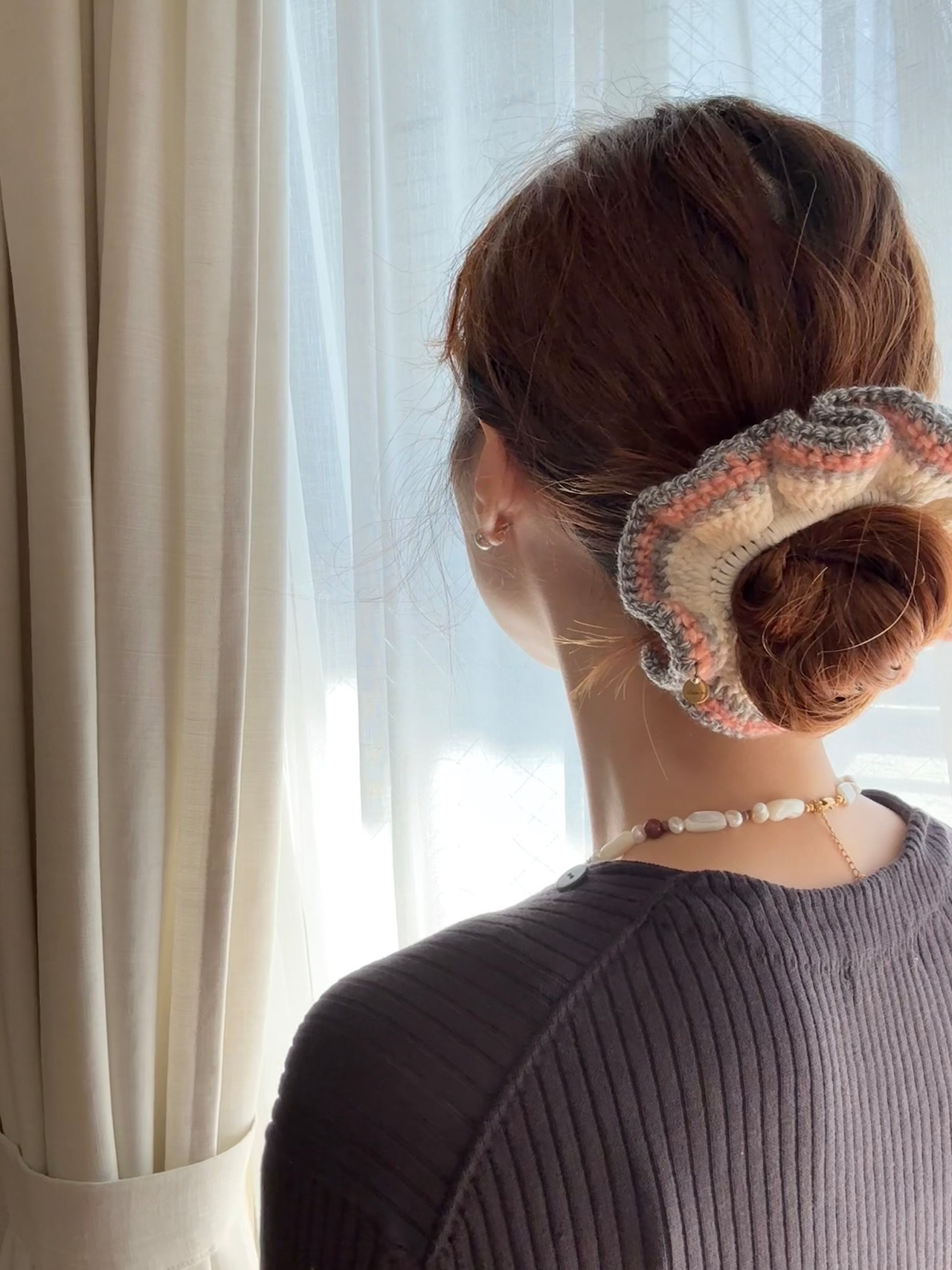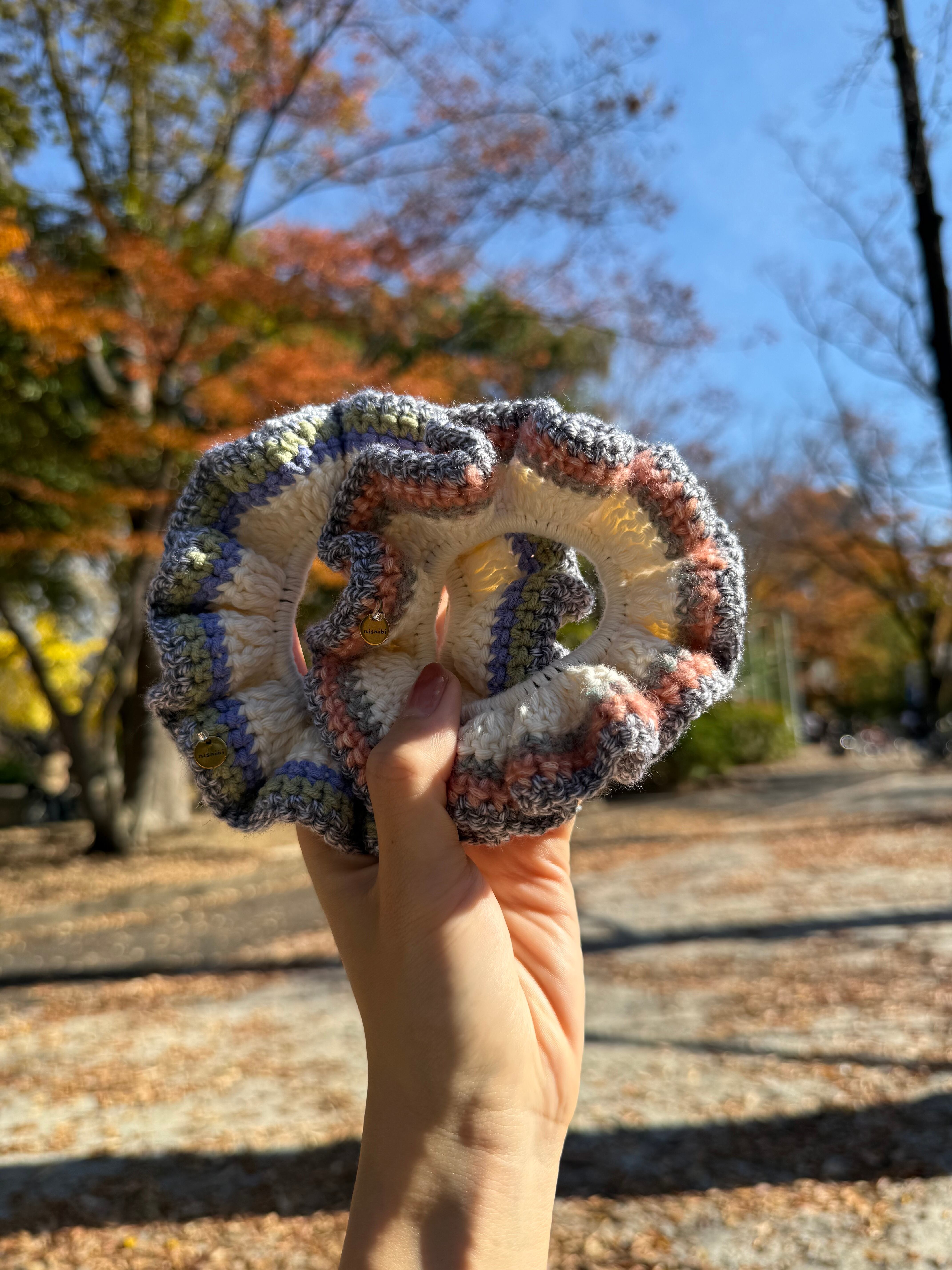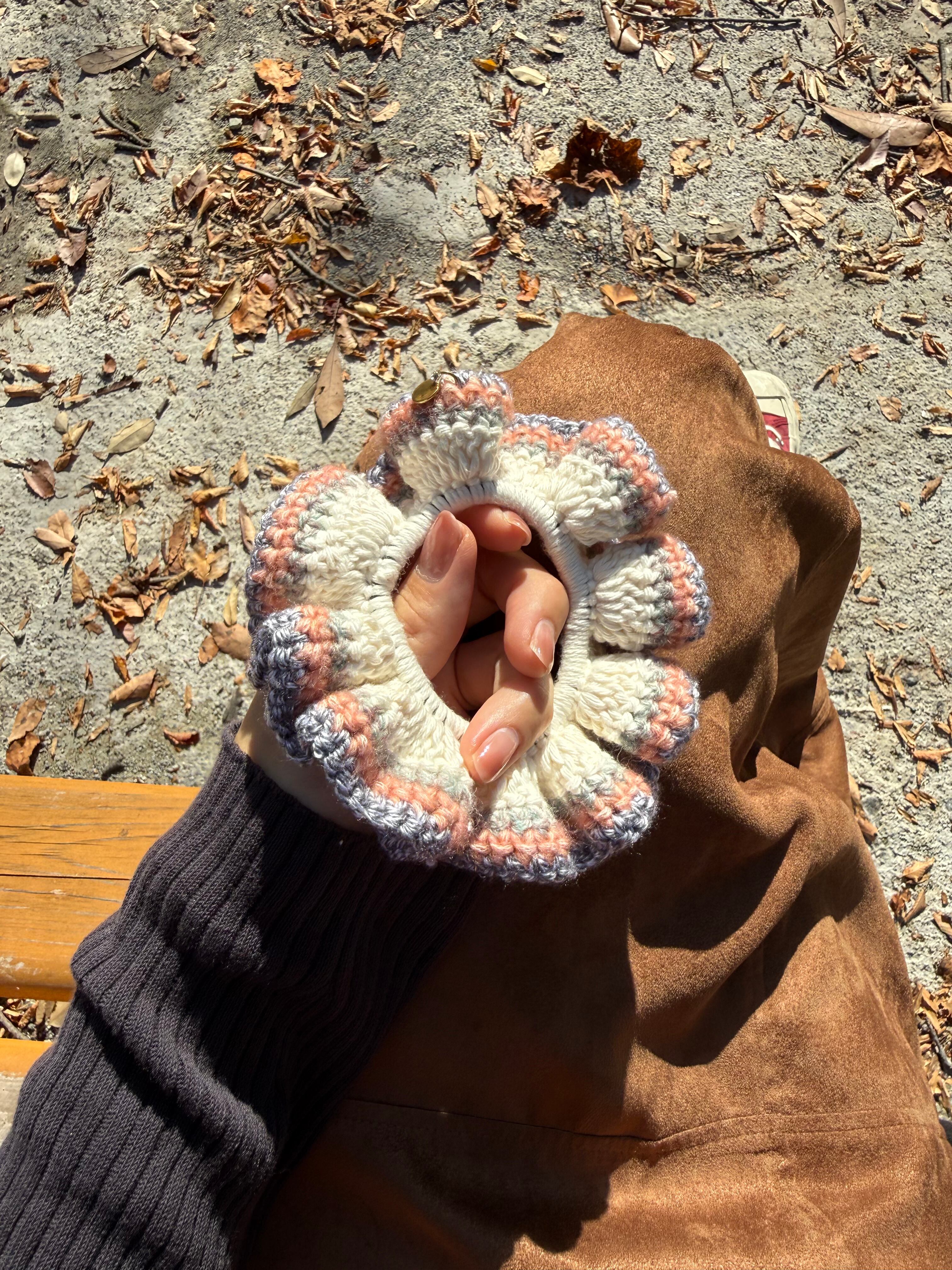 アクセサリー感覚で付けられる手編みのシュシュ。