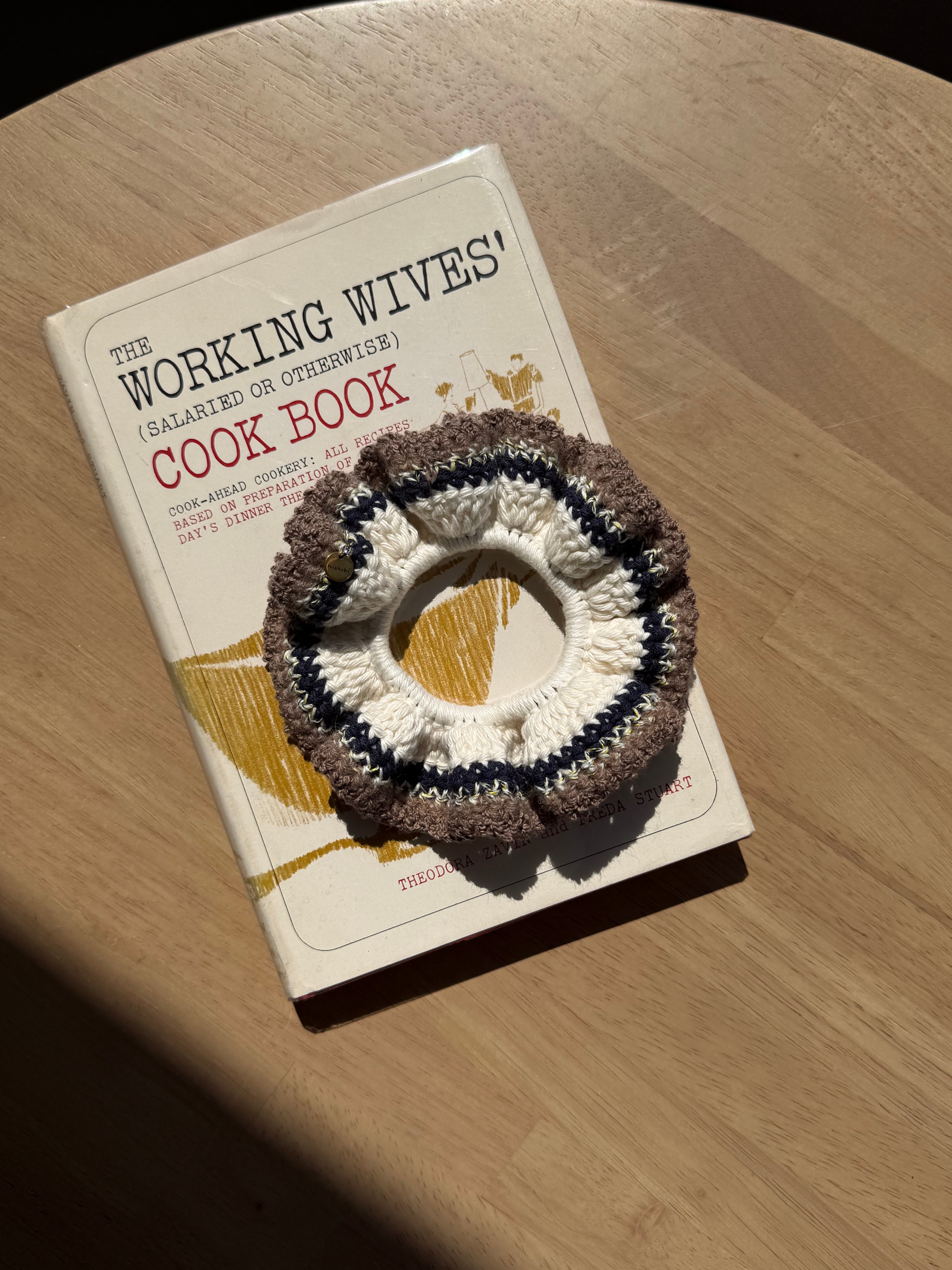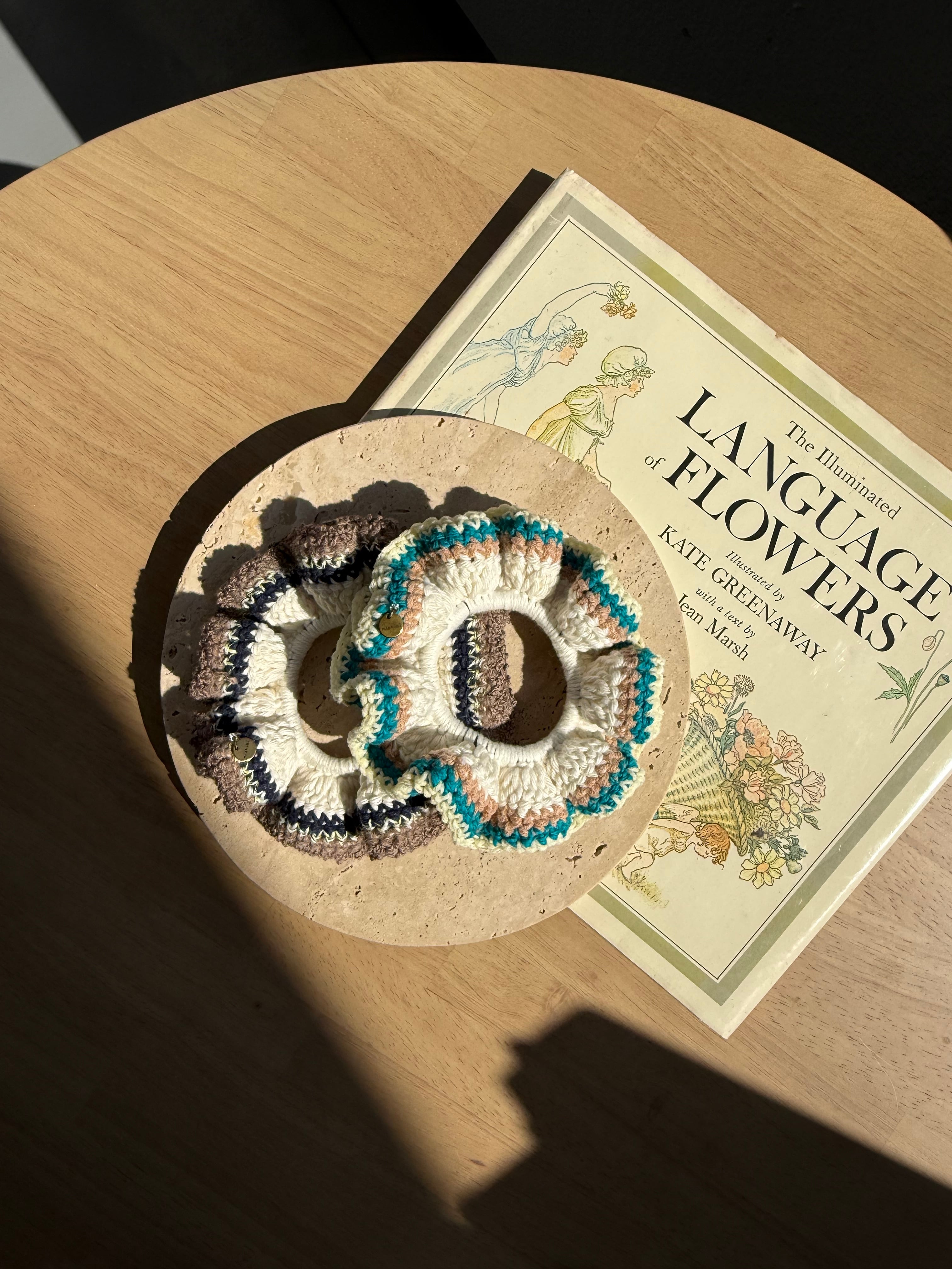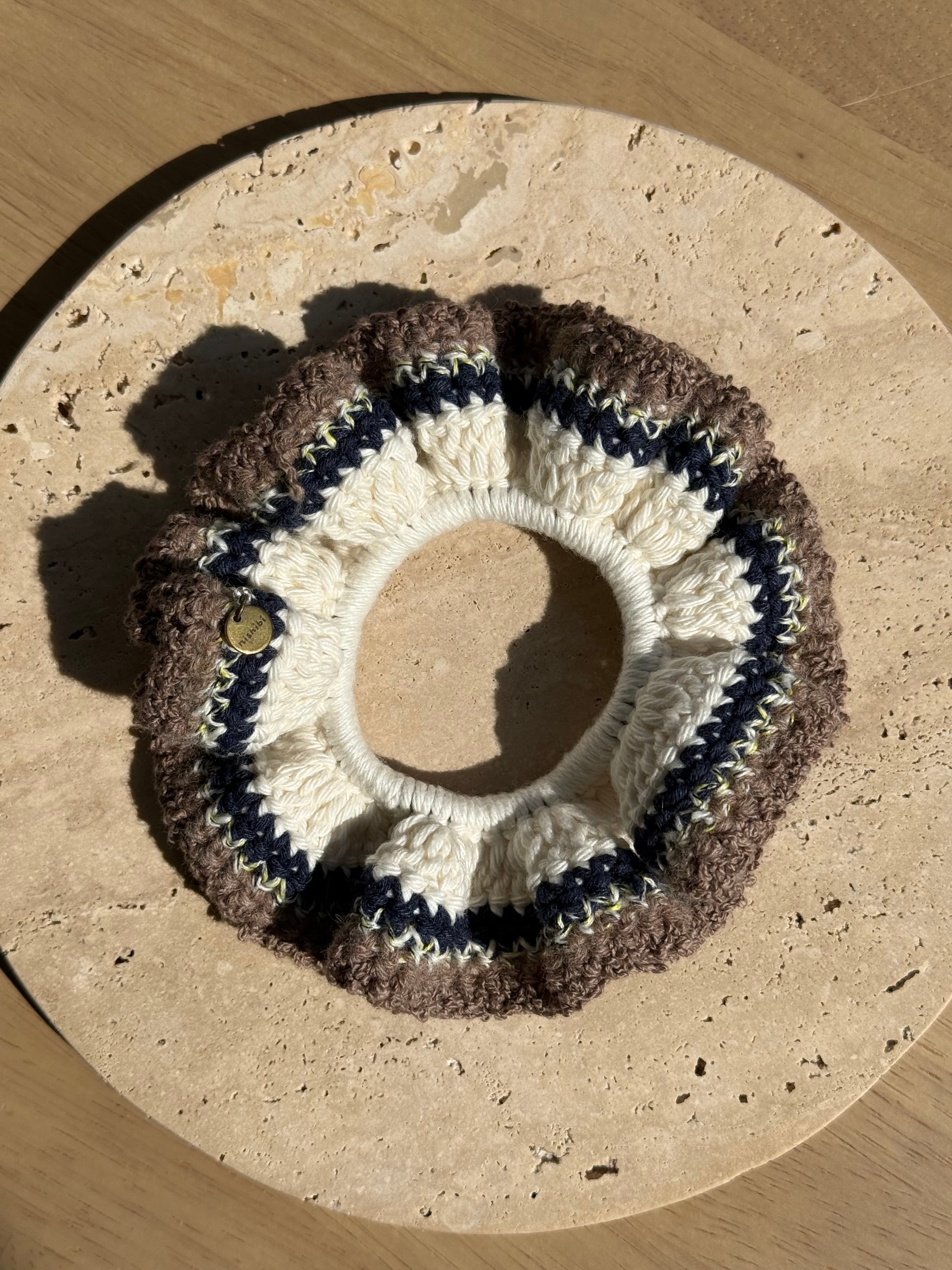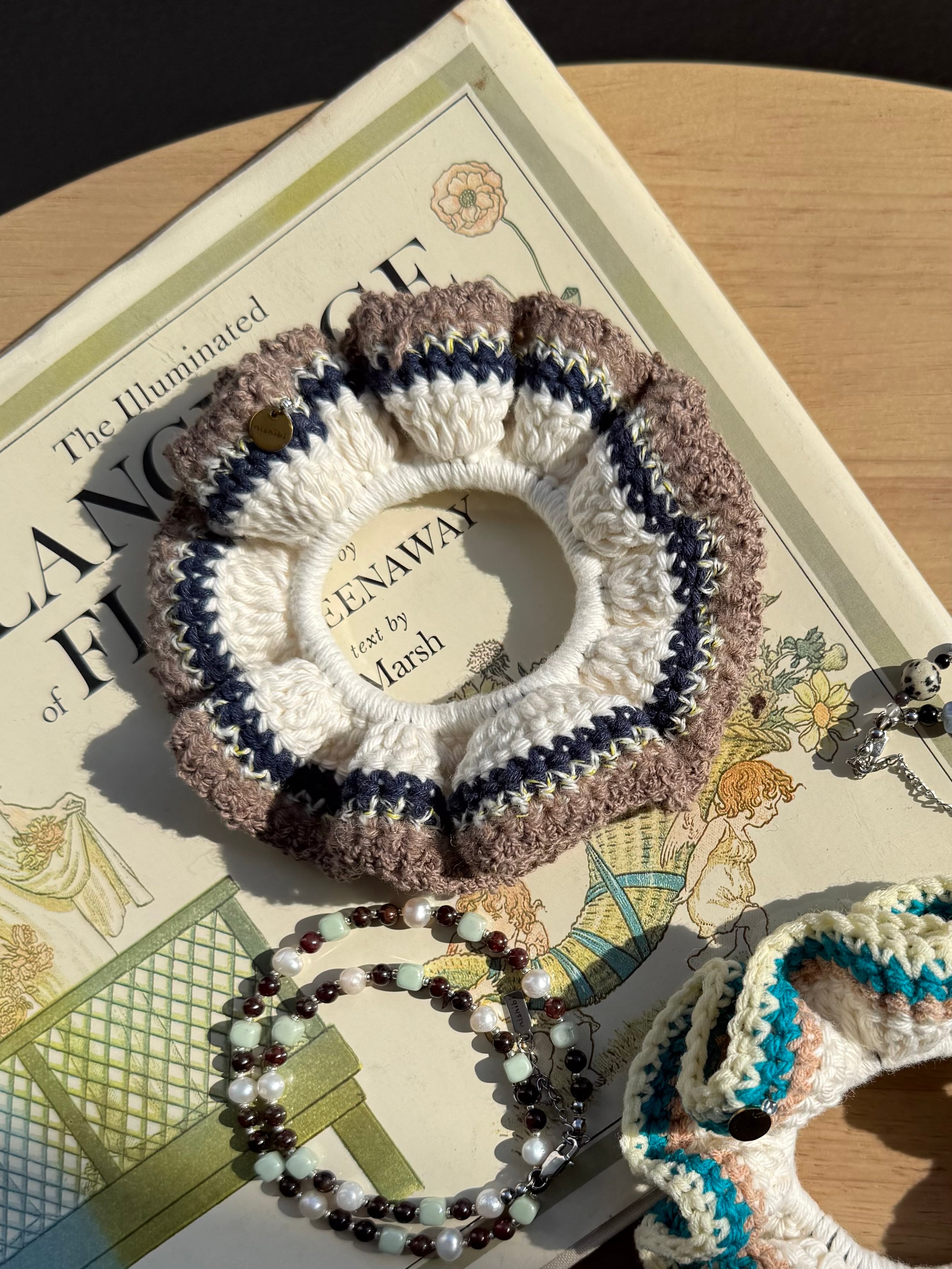 アクセサリー感覚で付けられる手編みのシュシュ。